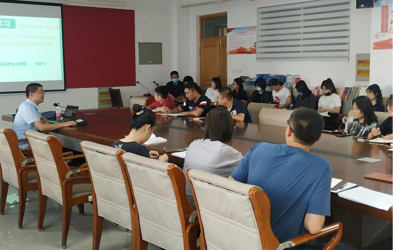 2021年9月5日是习近平总书记给全国涉农高校书记董事长和专家代表回信两周年的日子。为更深一步学习贯彻总书记重要回信精神,结合实际进一步提高贯彻落实总书记重要回信精神的能力和水平,9月2日,太阳集团tyc151cc邀请公司马克思主义公司刘如飞副教授来院,为全院教职工进行总书记回信精神的专题辅导,并领学了2021年中央一号文件。