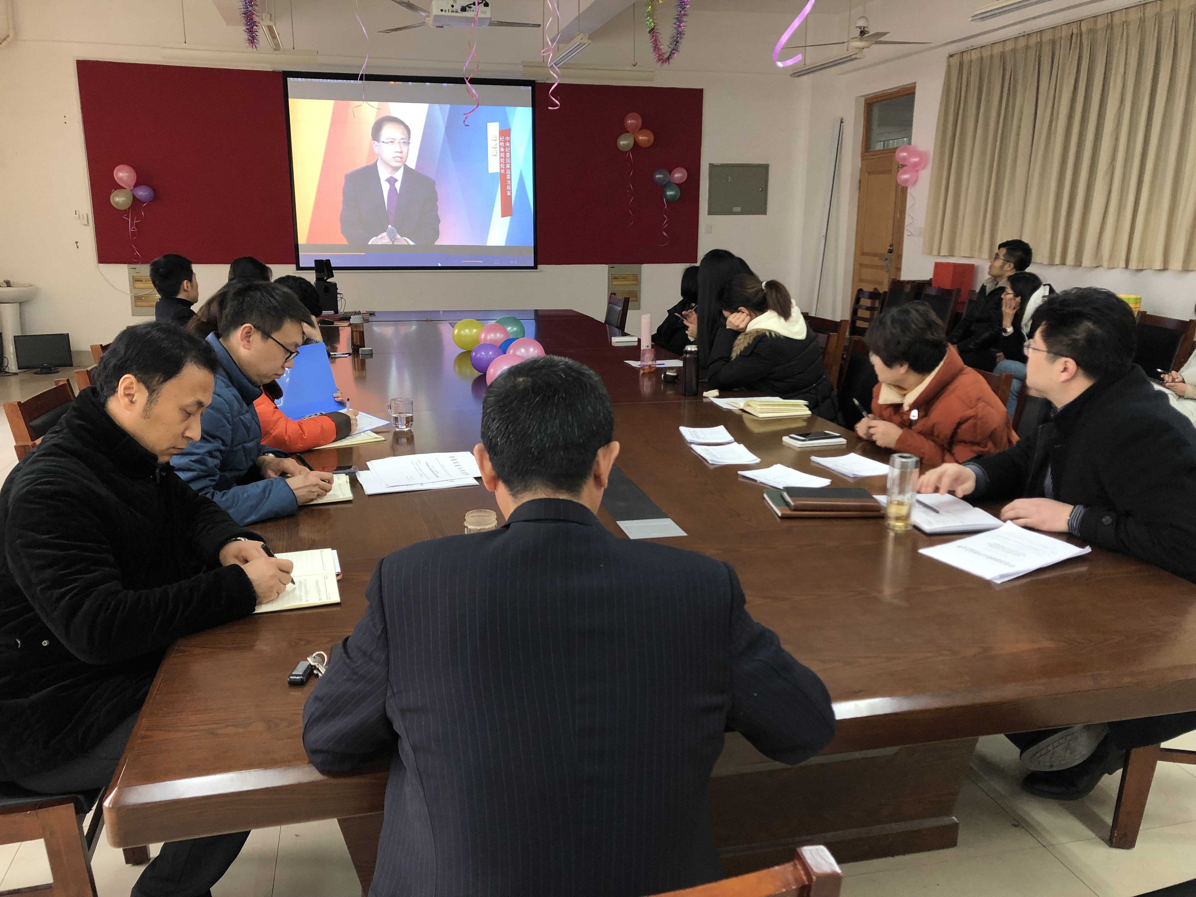 为进一步深入学习贯彻《中国共产党纪律处分条例》,增强纪律意识,12月27日,太阳集团tyc151cc组织全体教职工在文经楼资料室一同观看《中国共产党纪律处分条例》亮点释义视频。
