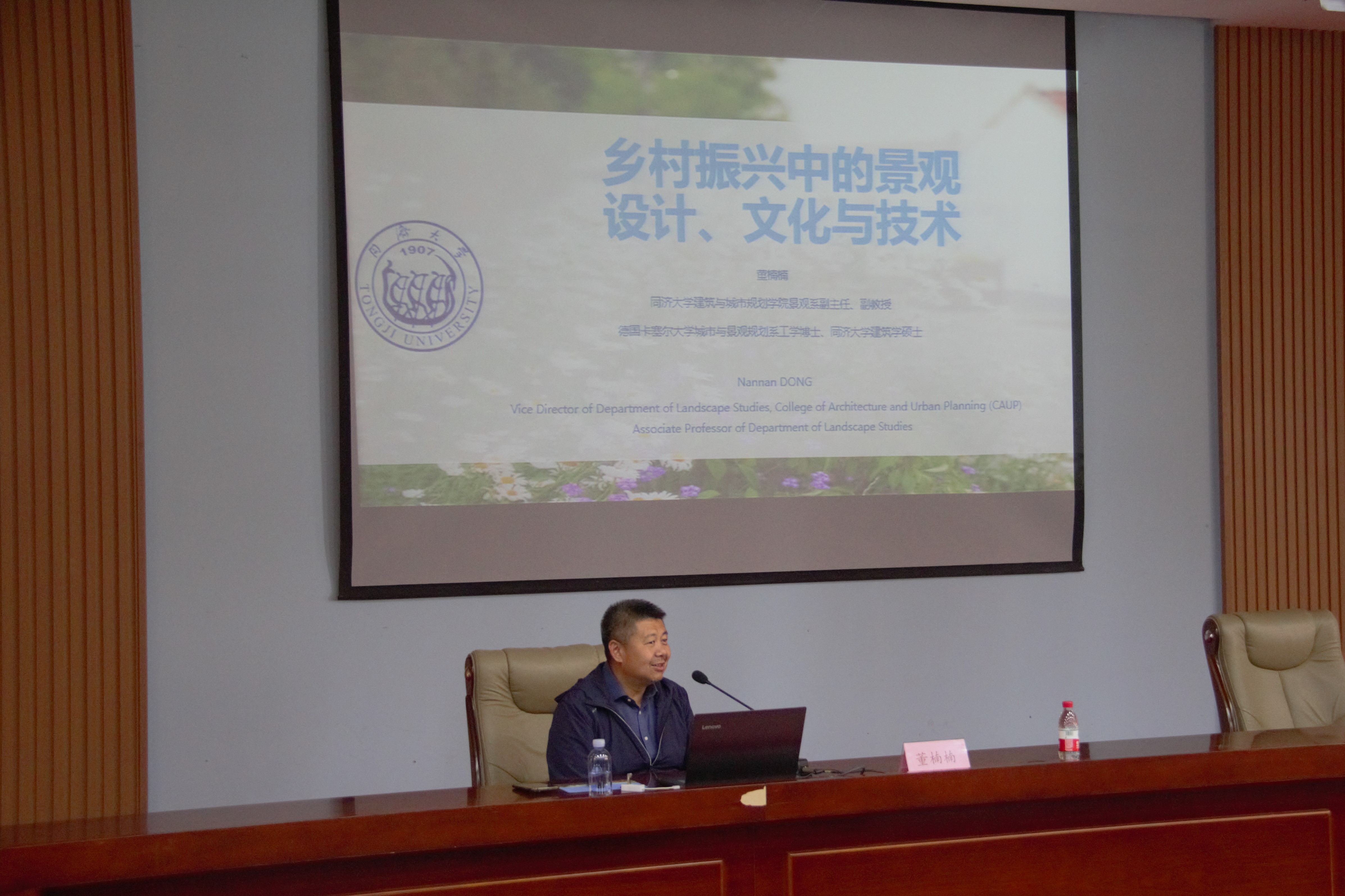 5月13日,太阳集团tyc151cc特邀同济大学建筑与城市规划公司景观学系副主任、博士生导师董楠楠副教授在学术会馆第三报告厅做题为《田园实验:乡村振兴中的景观设计、文化与技术》的专题讲座。经理李慧斌及相关专业部分师生参加报告会。报告会由经理助理崔晓磊主持。