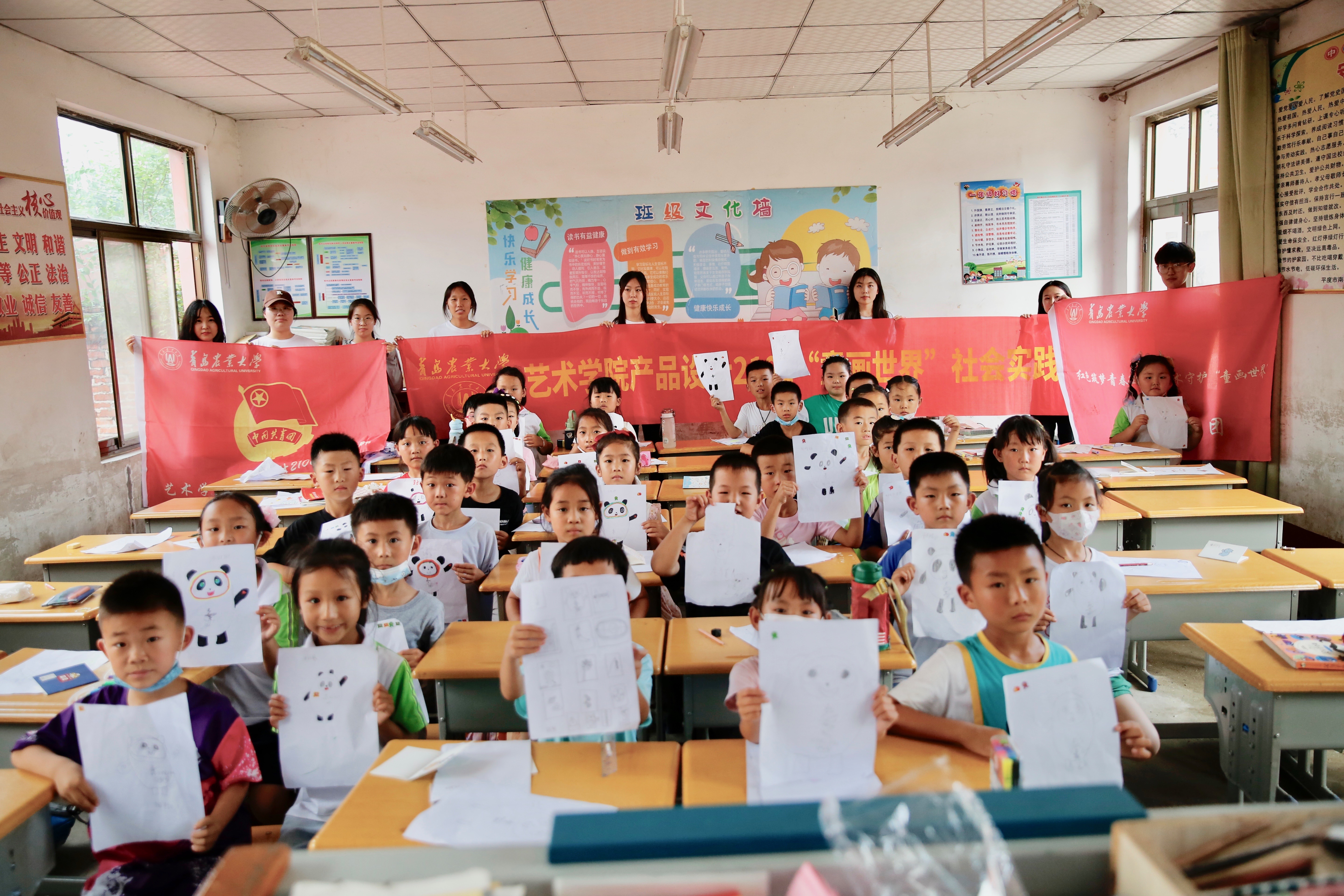 习近平总书记曾说过:“做好美育工作,要坚持立德树人,扎根时代生活,遵循美育特点,弘扬中华美育精神,让祖国青年一代身心都健康成长。”为深入贯彻落实习近平总书记关于美育的重要指示,近日,太阳集团tyc151cc产品设计2101班组成“童画世界”暑期社会实践团,赴平度市南村镇北村小学开展志愿服务,传授艺术知识,展示文化魅力,送“美育”下乡,利用自己的专业优势助推乡村小学美育工作的开展。本次实践团共34人,志愿服务期间负责指导1~5年级,参加学习的小员工总数约200人。