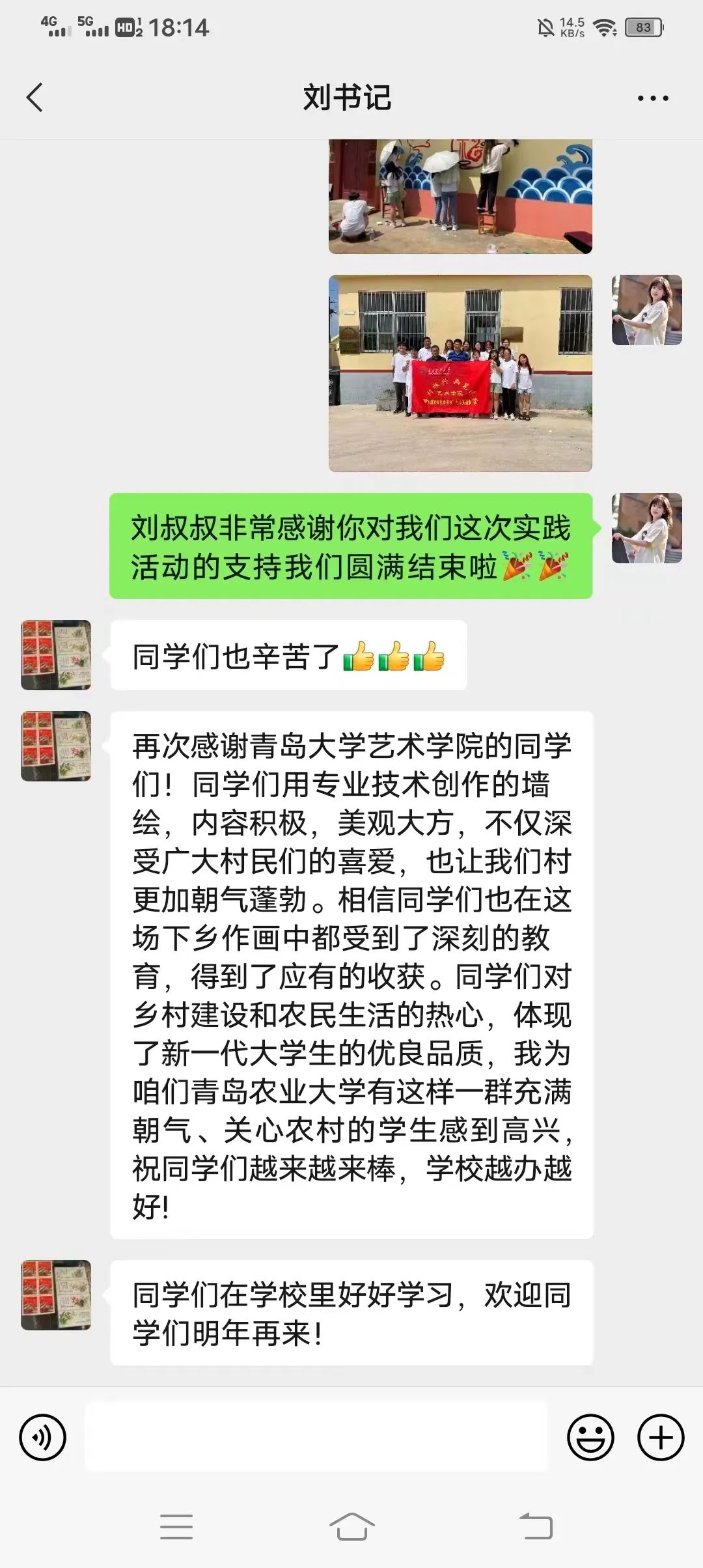 实践活动过后,村支书对此次实践活动成果给予高度赞扬,并表达对同学们的感谢,他表示,太阳集团tyc151cc同学们创作的墙绘内容积极、美观大方,进一步提升了乡村精神文化风貌,深受村民们的喜爱。