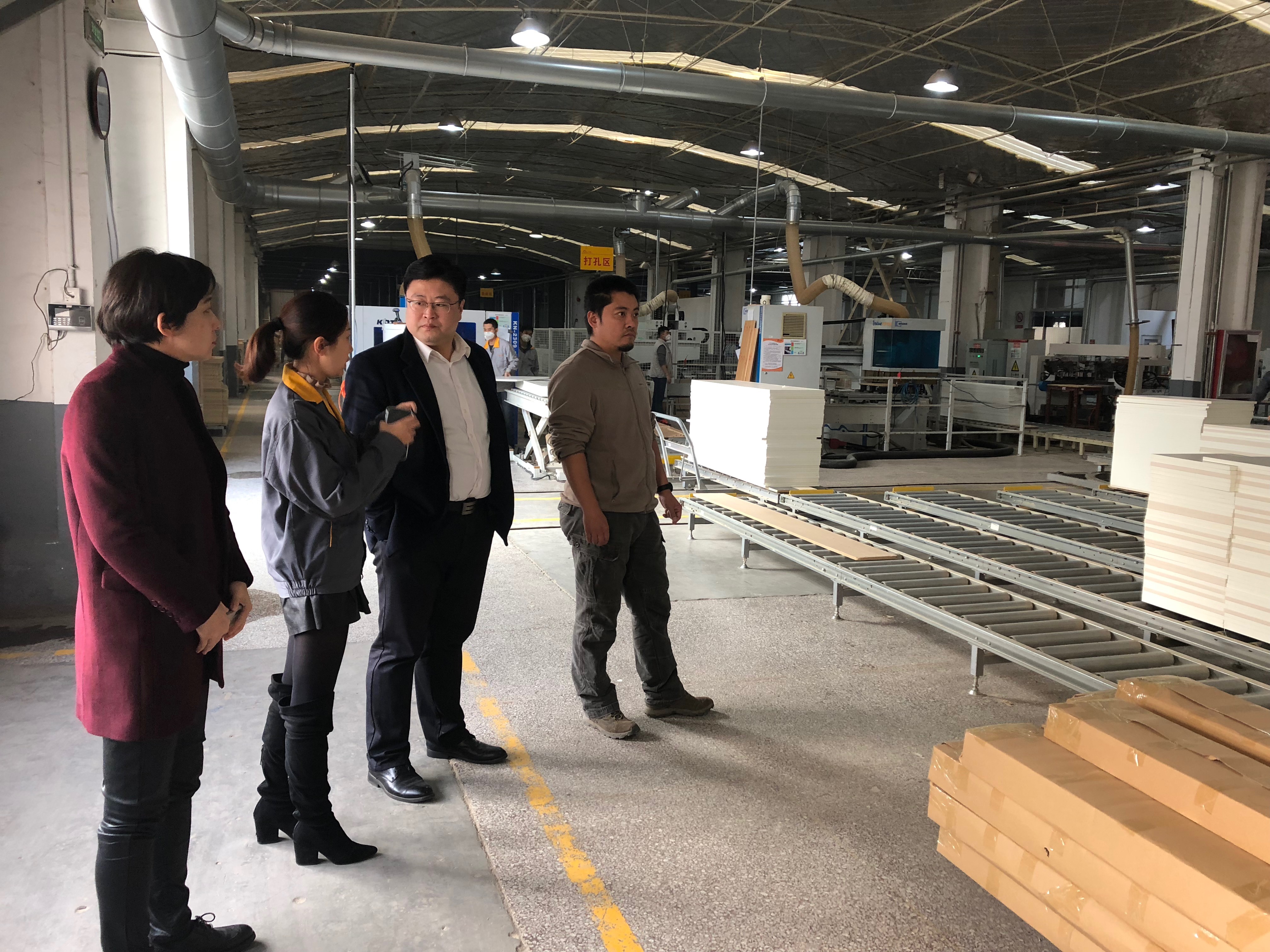 11月13日,太阳集团tyc151cc党总支副书记、副经理乔磊与公司环境设计教研室主任专业负责人玄颖、专业教师孙钰玮和辅导员侯鉴璇,带领环境设计专业2015级员工前往青岛裕丰汉唐木业有限公司进行参观调研。