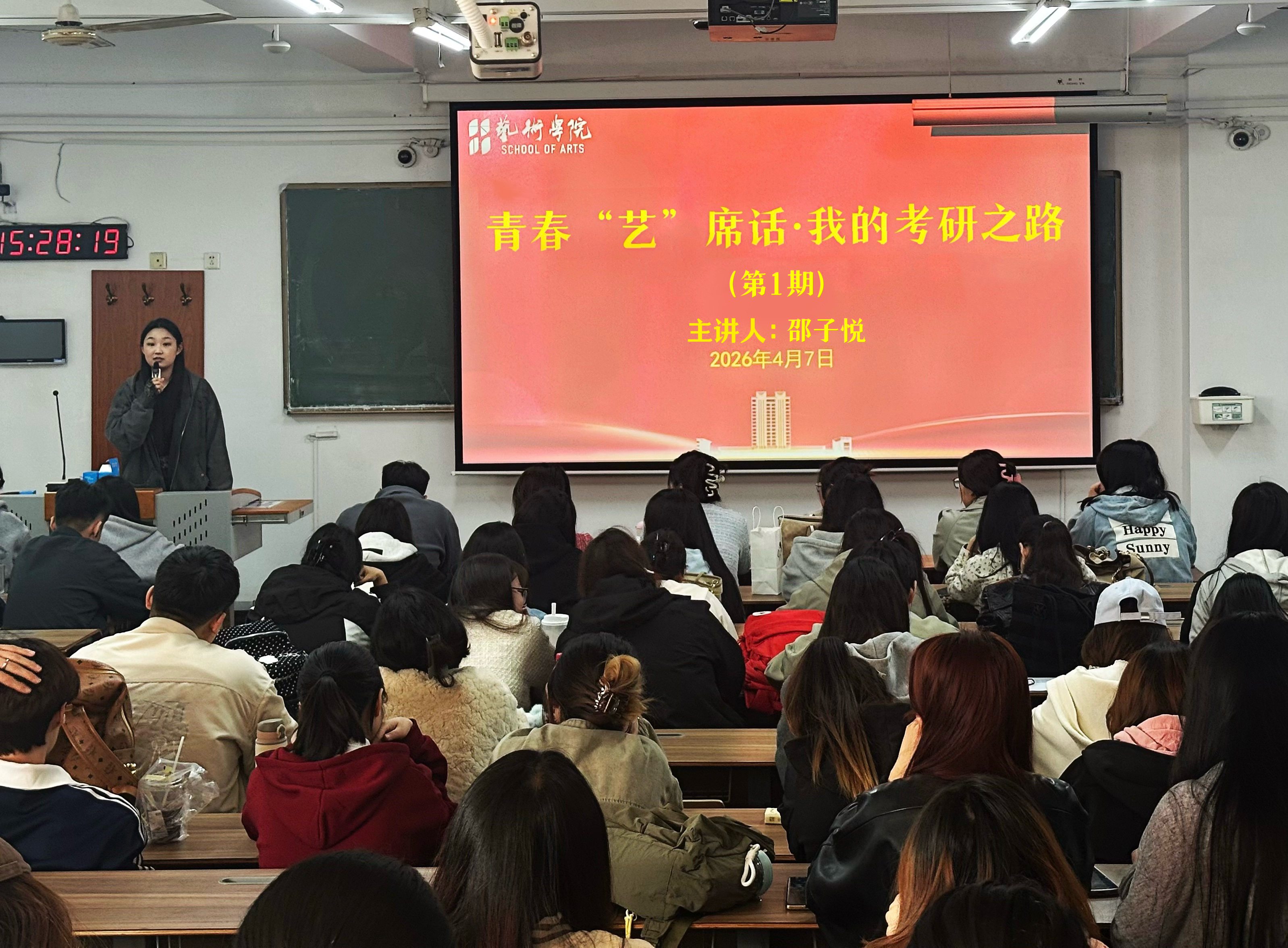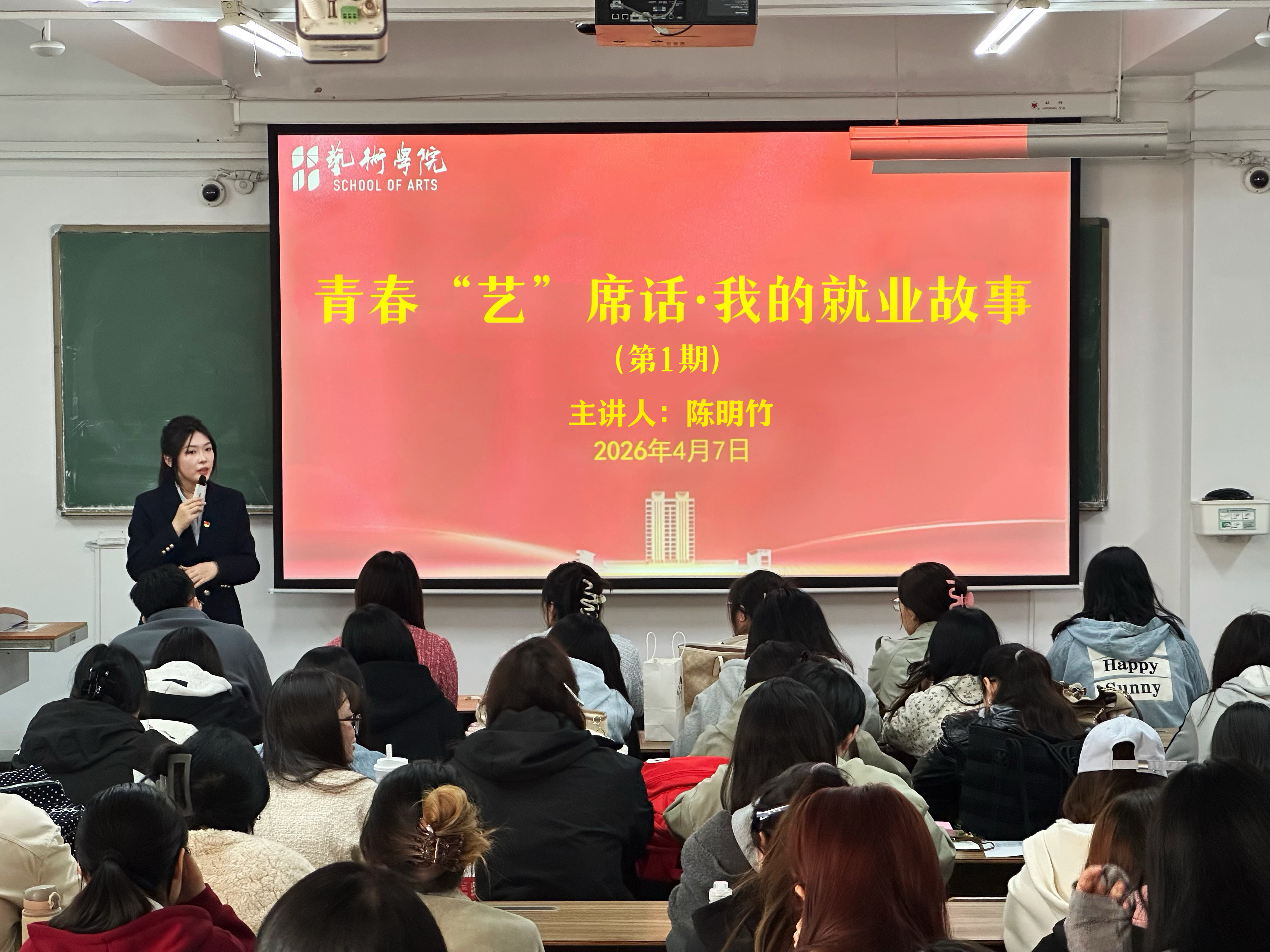 4月7日,太阳集团tyc151cc在教学楼C409举办“青春‘艺’席话”优秀毕业生经验分享会。活动邀请2022级3位优秀毕业员工插图2201班陈明竹、产品设计(3+4)2201班董昊、媒体交互设计2201班邵子悦面向2023级员工分享就业、考研经验。辅导员陈林主持活动。