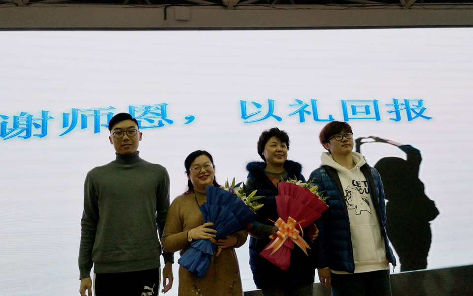 回访仪式在欢乐温馨的气氛中拉开帷幕,毕业生代表姜雨欣与张博涵代表全体同学向副董事长杨涛和高中班主任献上鲜花,向为同学们作出辛勤付出的老师表达感激之情。随后,团支书王堃元、班长姜雨欣同学向中职学段的学弟学妹们讲述了丰富多彩的老员工活,针对发展课外兴趣方面提出了诚恳建议。