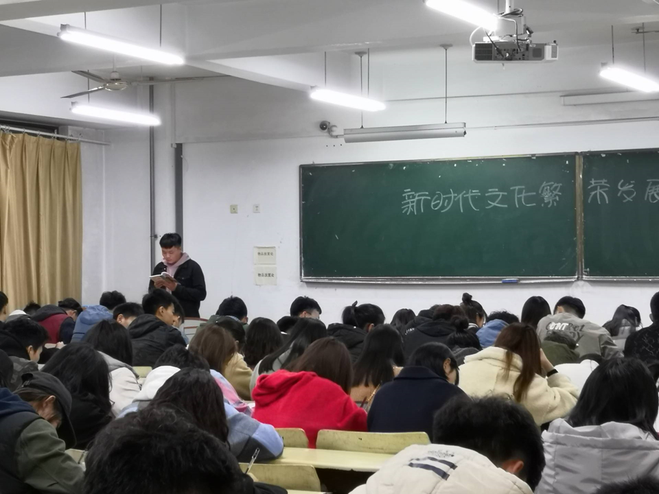 新时代推动社会主义文化繁荣兴盛,是践行党的十九大精神的基本要求,也是发展中国特色社会主义文化、坚持文化自信的必然选择。各班级团支书领学了新时代文化繁荣发展之道的重要性与意义,课堂氛围活跃,同学们认真倾听,积极讨论,使我们更加清楚的认识到要加强社会主义文化核心价值观的培育和弘扬,要加强思想道德建设与实践,为新时代推动社会主义文化繁荣兴盛创造条件。
