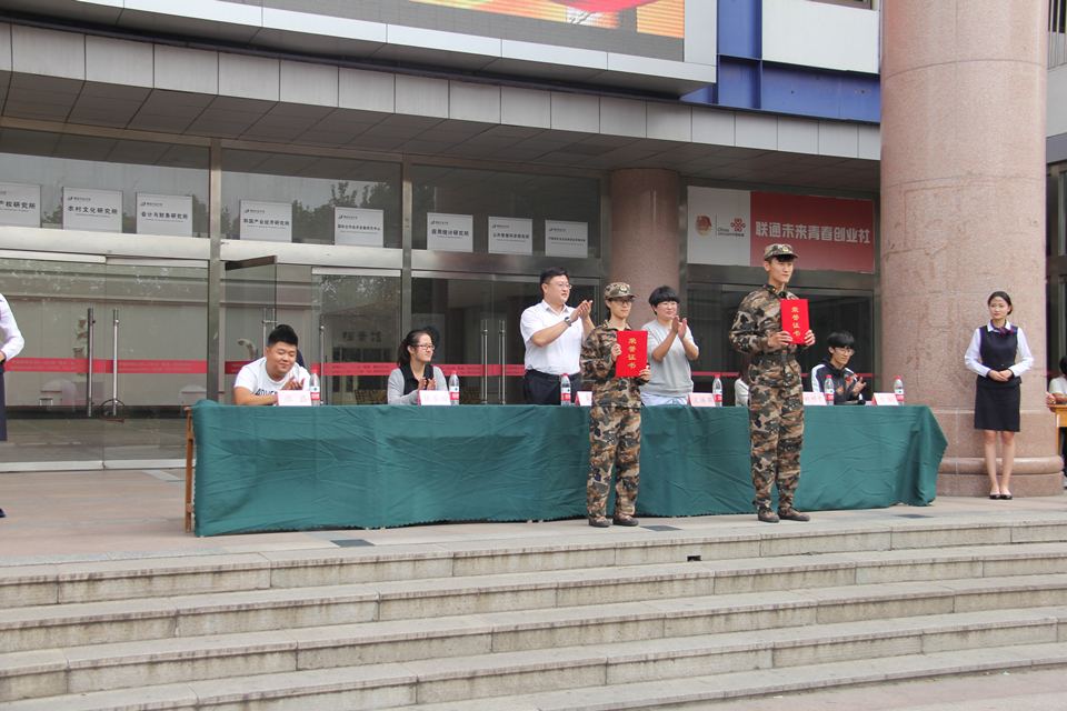9月29日下午,2017级新生军训汇演在文经前举行。公司党总支副书记、副经理乔磊,团委书记王海燕,辅导员侯鉴璇出席汇演并担任评委。