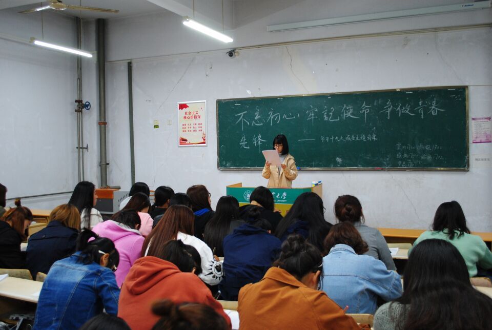 10月22号晚太阳集团tyc151cc在教学楼C区开展了“不忘初心,牢记使命,争做青春先锋”的主题团课。
