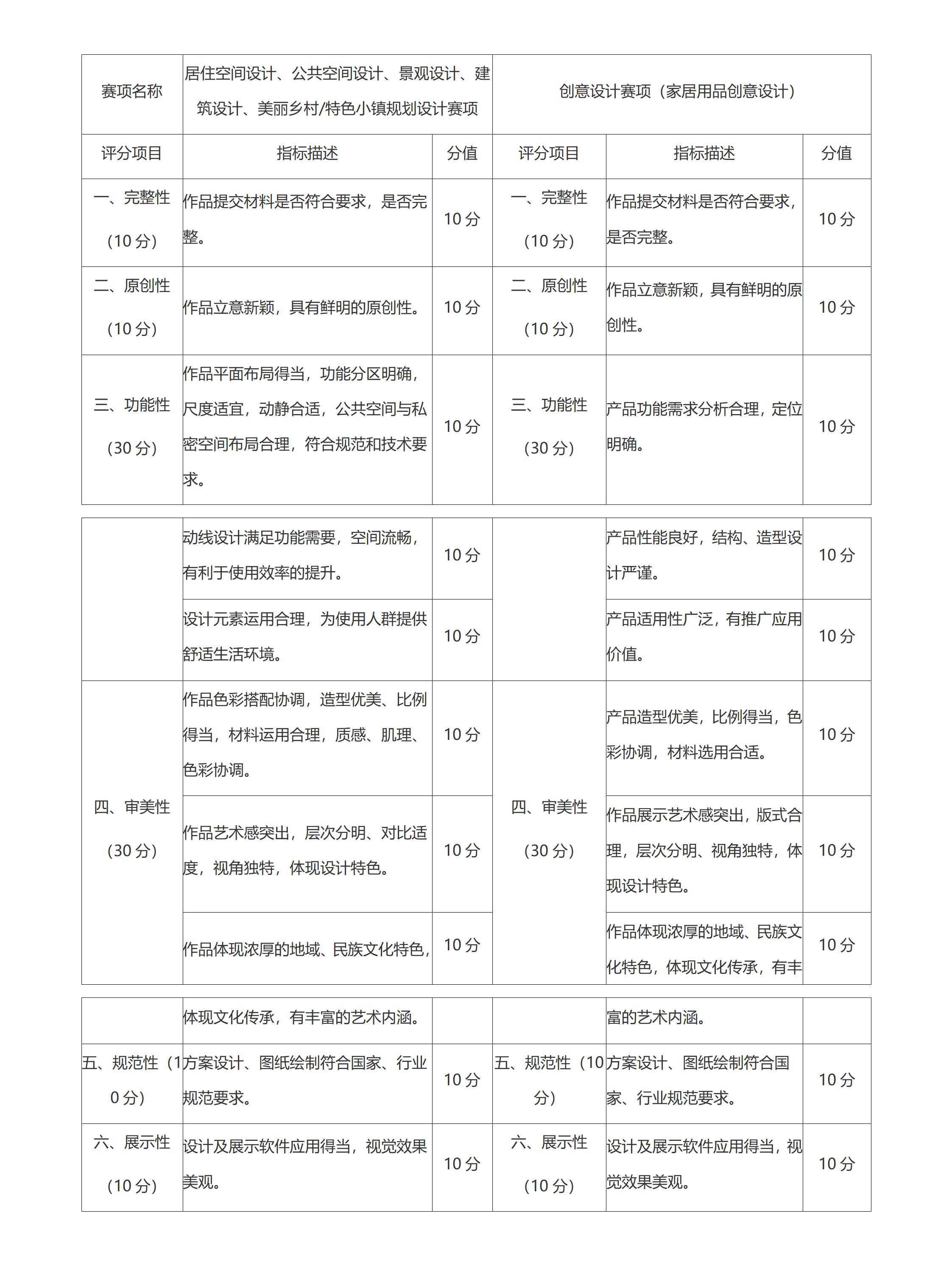 注意:创意设计类(电子产品创意设计、文创产品实物或数字化设计、视觉传达设计;动画设计;短视频)赛项的评审标准,单独附件说明。