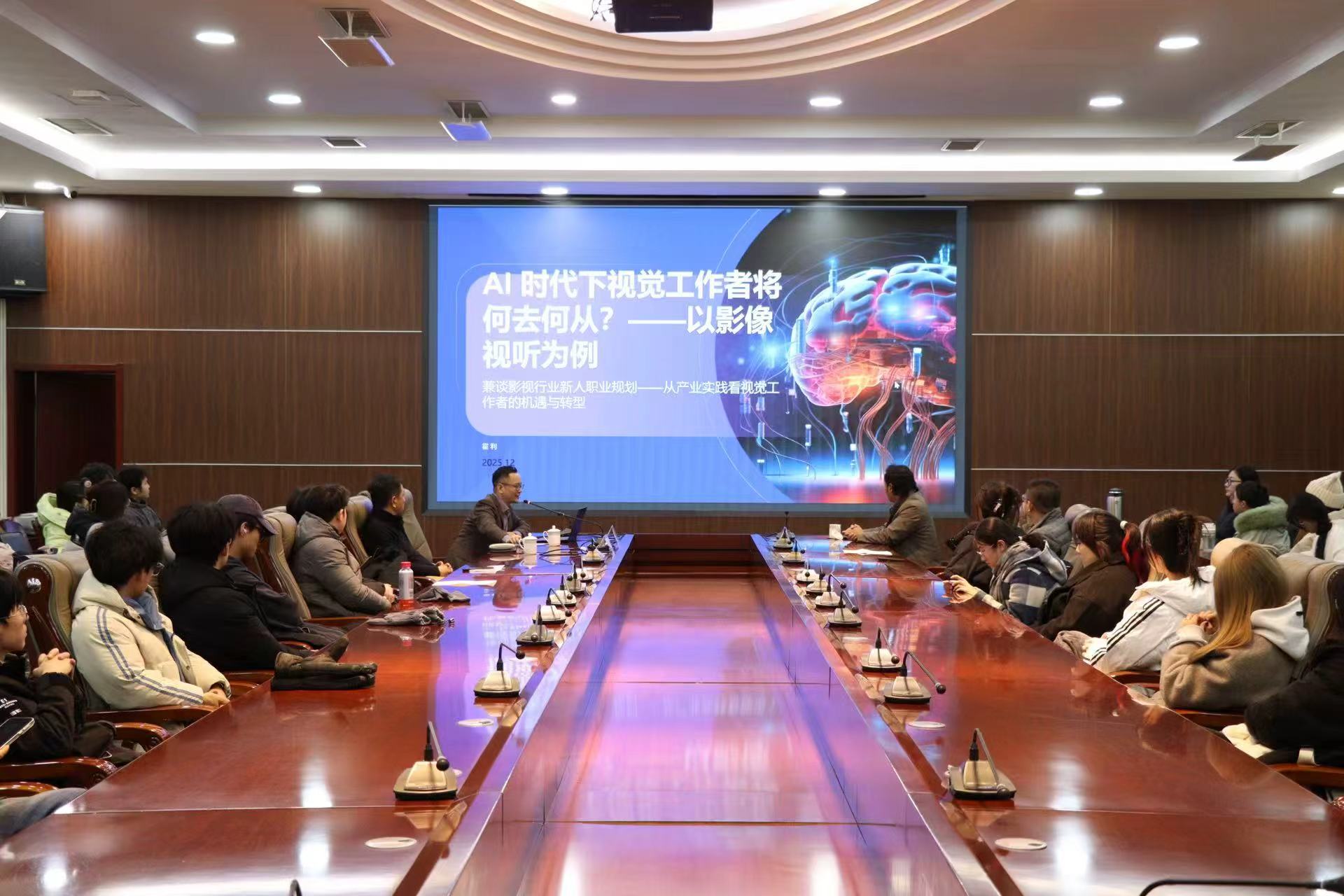 中国电影家协会会员、资深影视制作人霍利以“AI时代视觉工作者的出路”为题作专题分享,从行业前沿视角分析AI技术推动影视制作向非线性、高效率模式转型,并结合微短剧AI全流程制作、影视文旅历史场景复原等案例,展示了技术应用潜力。霍利同时表达了希望与公司在实习实践、项目合作方面深化合作的意愿。