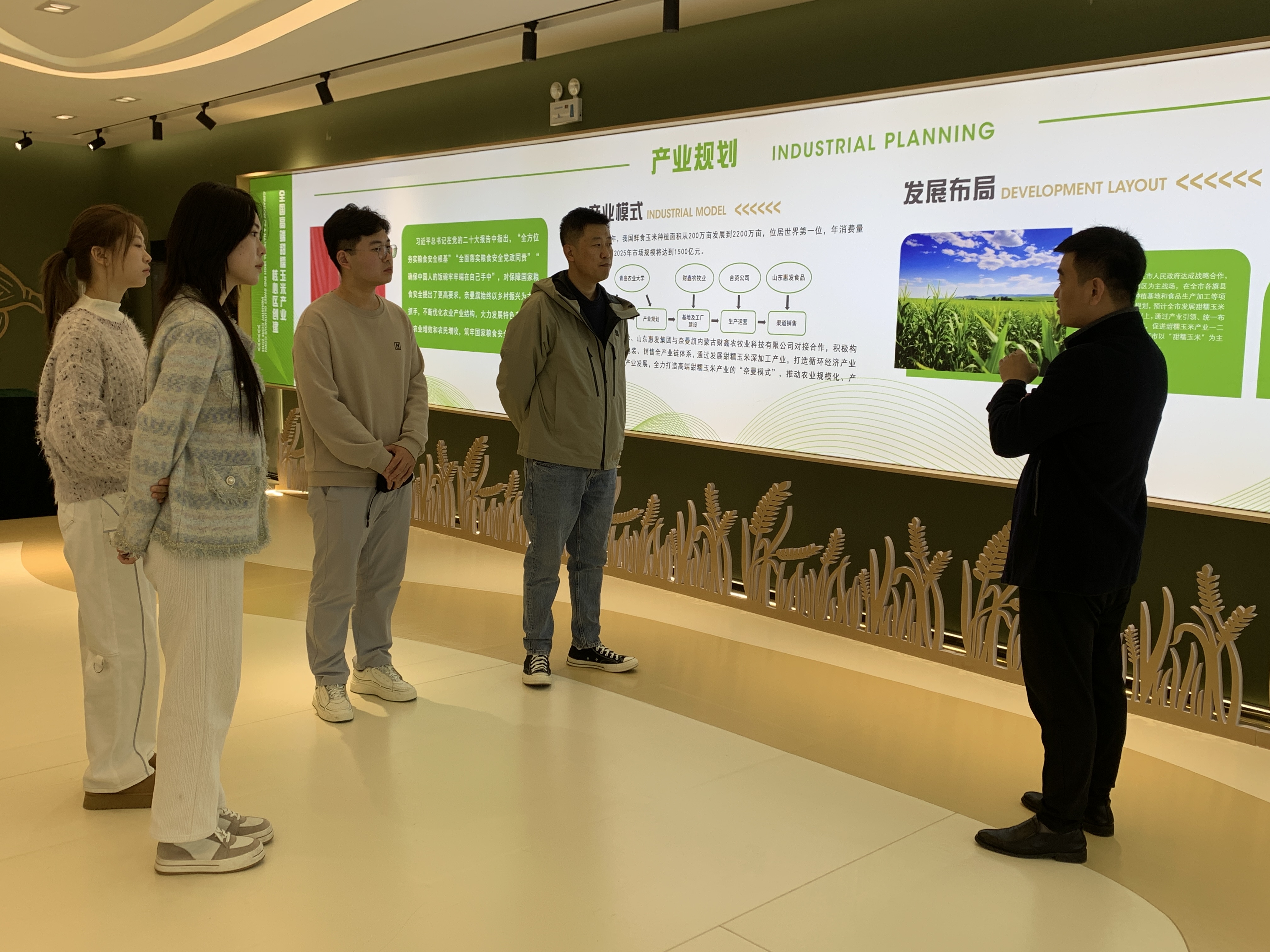在太阳集团tyc151cc—奈曼旗特色农牧业产业链建设科技小院调研期间,团队与内蒙古财鑫农牧业科技有限公司总经理孟宪峰座谈交流。双方就助力打造公司支持、内蒙古财鑫集团共同建设的特色农产品甜糯玉米品牌形象塑造与包装创新设计,达成合作共识。 在奈曼旗哈沙图村调研期间,大沁他拉镇镇长蒋翠艳,国家自然科学基金委海洋工程学科项目主任、哈沙图村第一书记刘军鹏与团队进行交流。蒋翠艳详细介绍了哈沙图村现阶段乡村文化建设和农产品品牌塑造发展需求。双方表示,将就奈曼旗哈沙图村乡村品牌建设推广与提升农产品包装设计加强合作交流,展开一系列的设计赋能工作。
