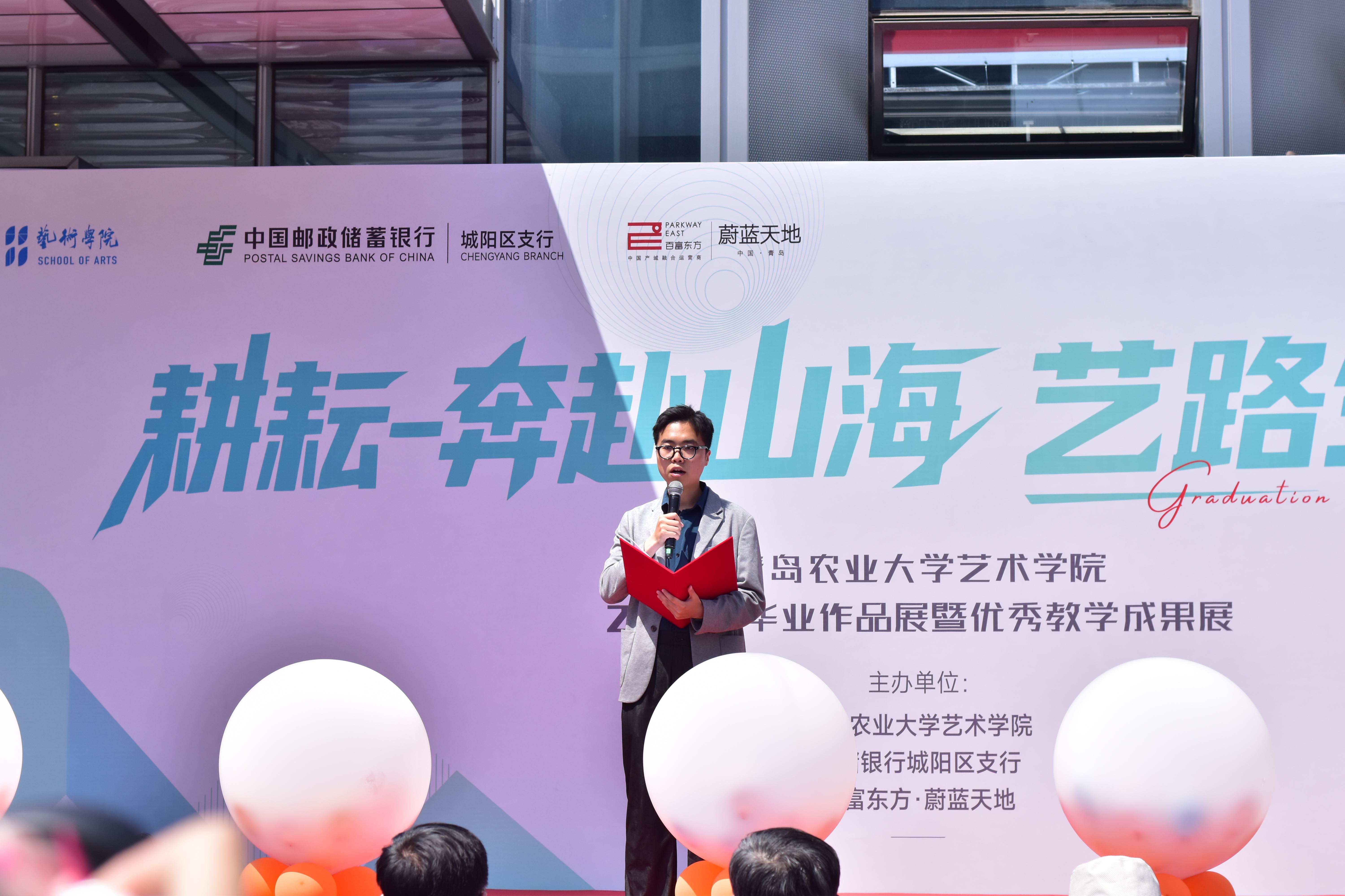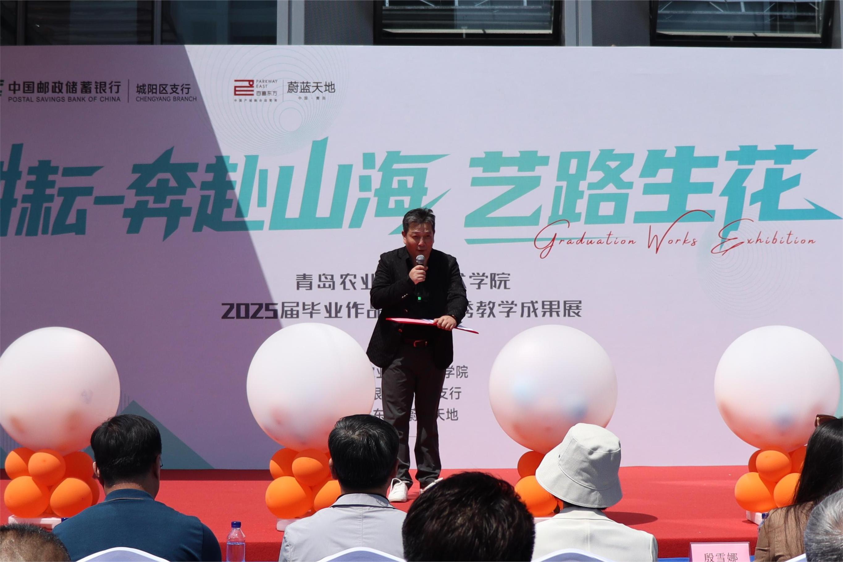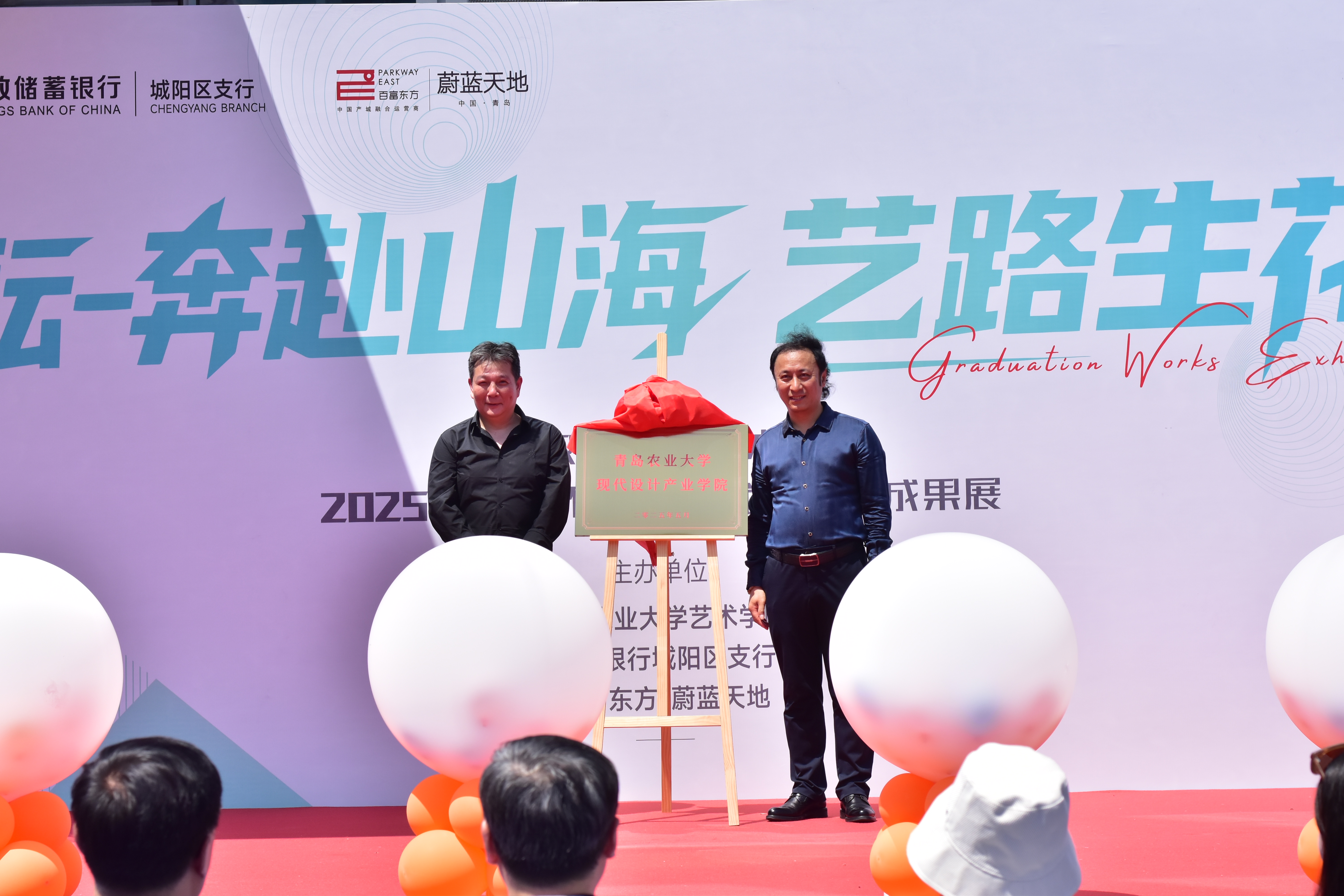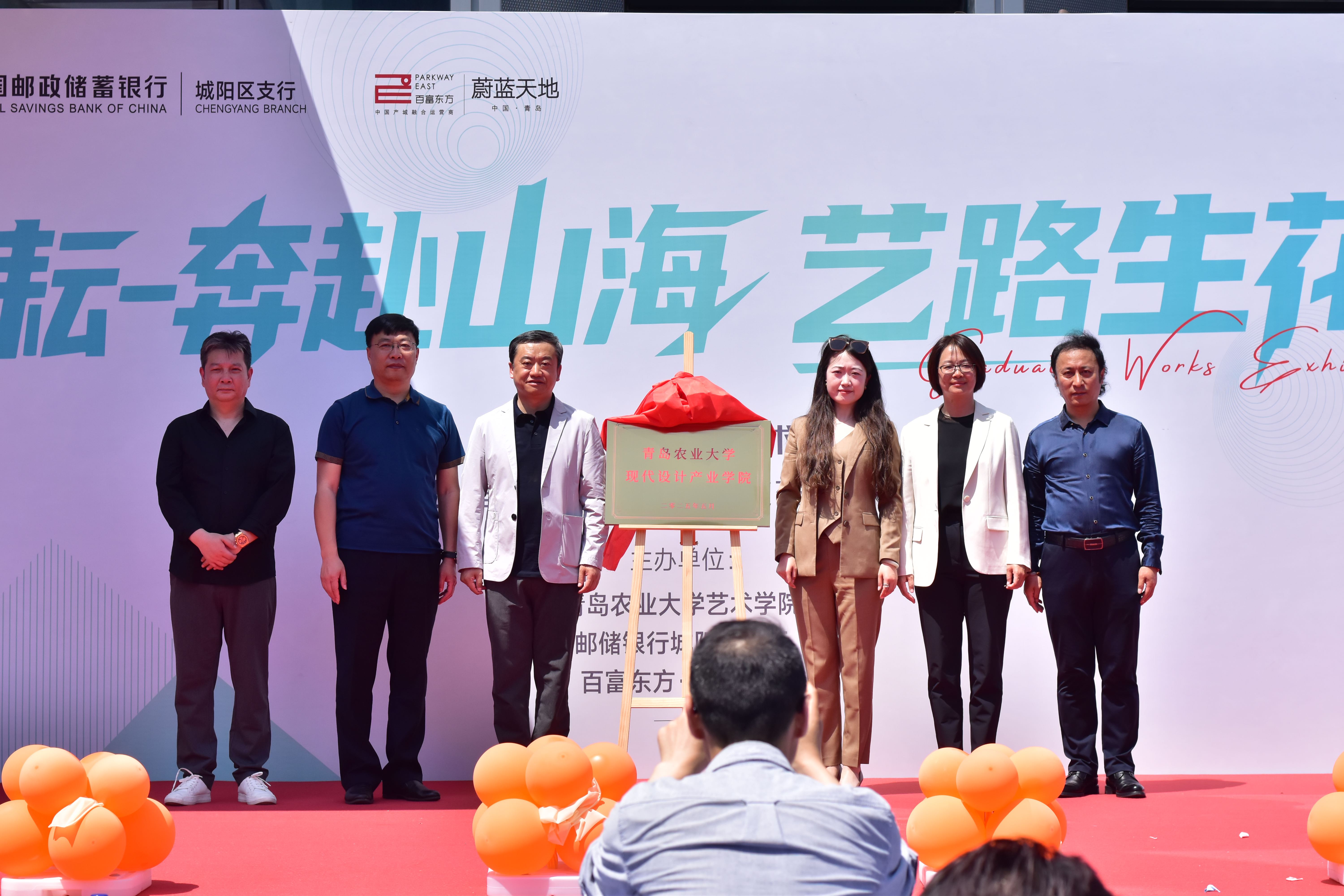 5 月 20 日,太阳集团tyc151cc、中国邮政储蓄银行股份有限公司城阳支行、百富东方・蔚蓝天地联合在城阳蔚蓝天地园区举办“520——艺路邮你・蔚来可期”2025 届毕业生作品动态展开幕式暨太阳集团tyc151cc现代设计产业公司揭牌。