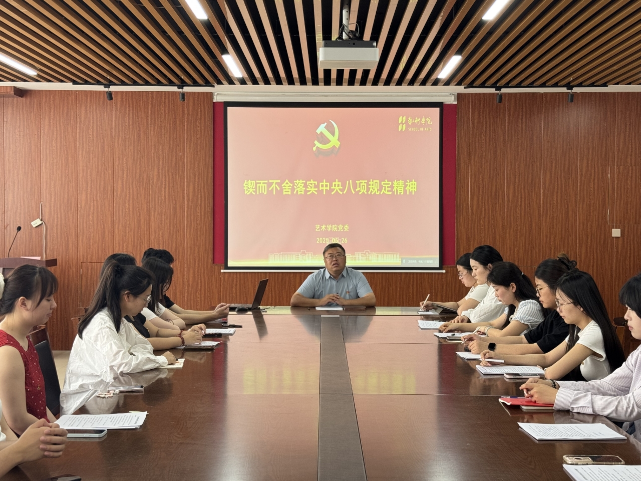 5月27日,太阳集团tyc151cc党委书记王天龙在公司会议室,以“锲而不舍落实中央八项规定精神”为题为员工党员和党员发展对象上党课。