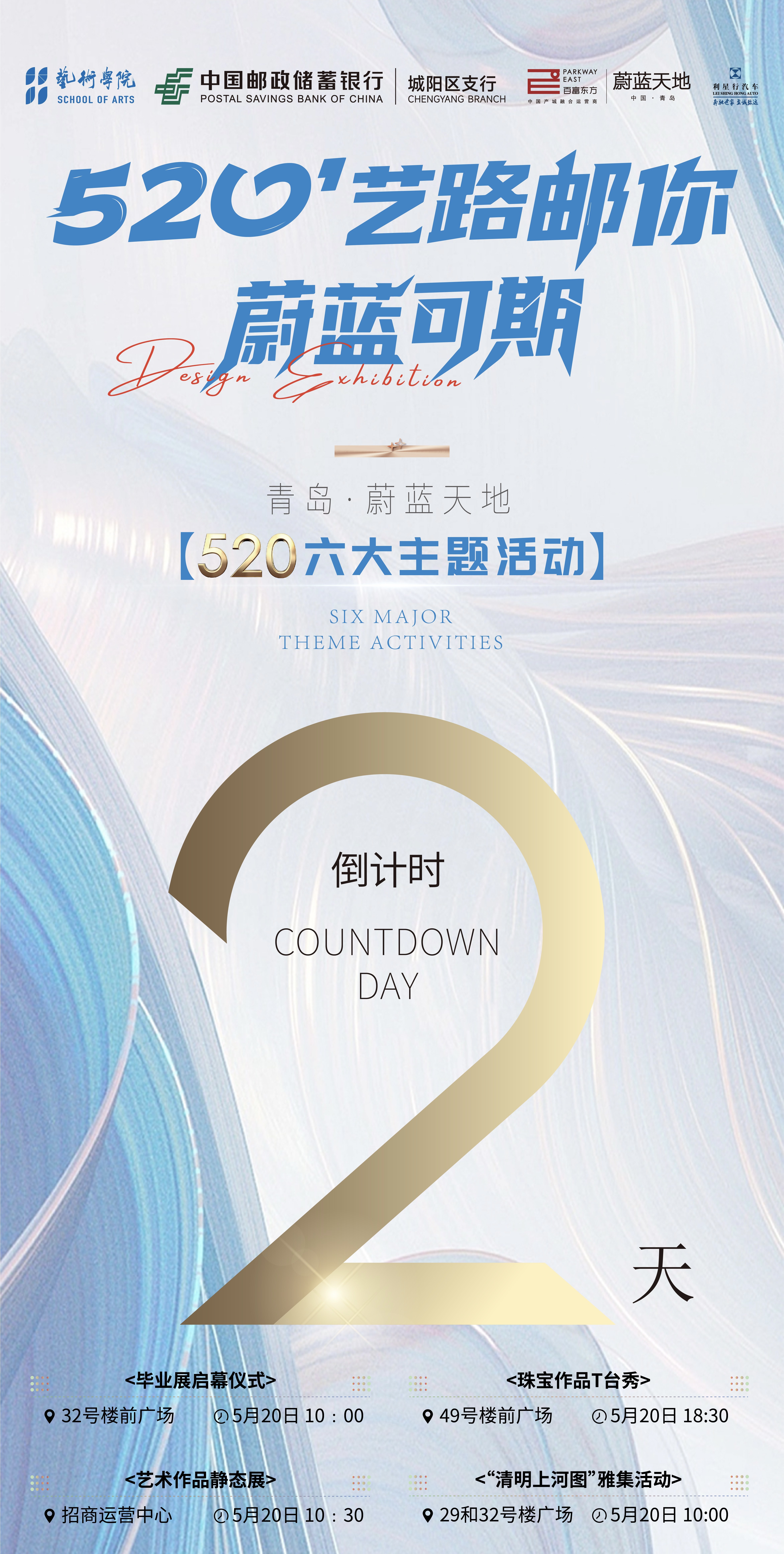动态展时间、地点:5月20日晚19:00 - 21:00;蔚蓝天地49#广场。