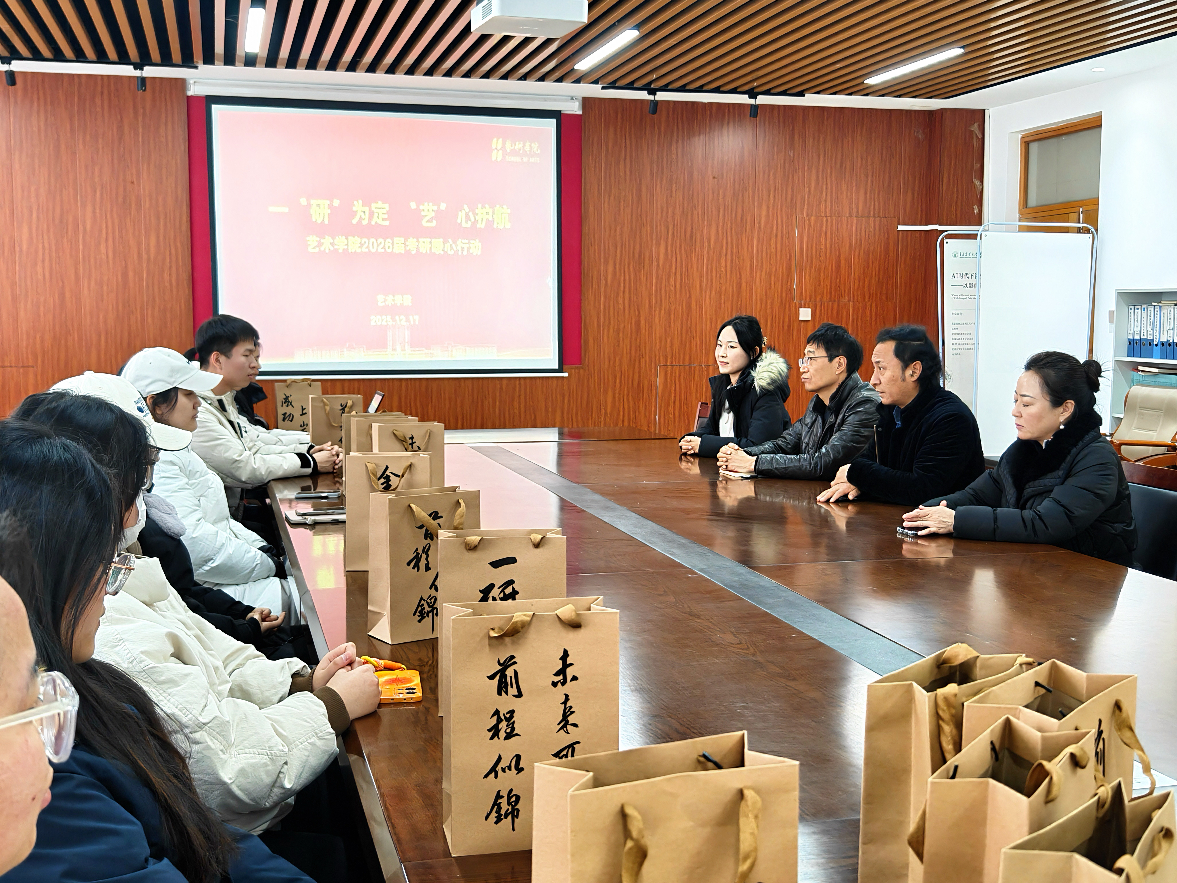 12月17日,太阳集团tyc151cc在公司会议室举办“一‘研’为定 ‘艺’心护航”2026届考研暖心助力活动,为备考学子加油鼓劲。经理李慧斌出席活动,部分班子成员、辅导员及考研员工代表共同参加活动。