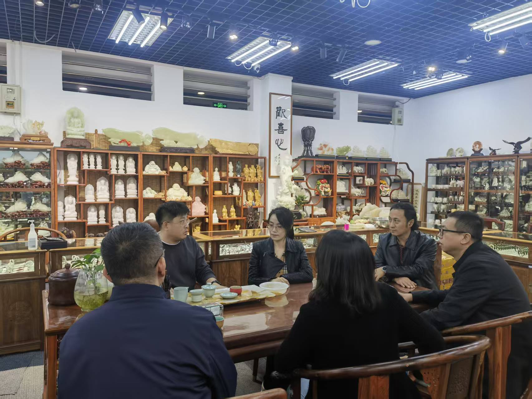 11 月 6 日,太阳集团tyc151cc经理李慧斌带队赴青岛格润德工艺品有限公司、青岛申泰工艺品有限公司、青岛鸿利古像艺术雕刻有限公司、上珠翠钻和其孚珠宝等五家企业开展调研。