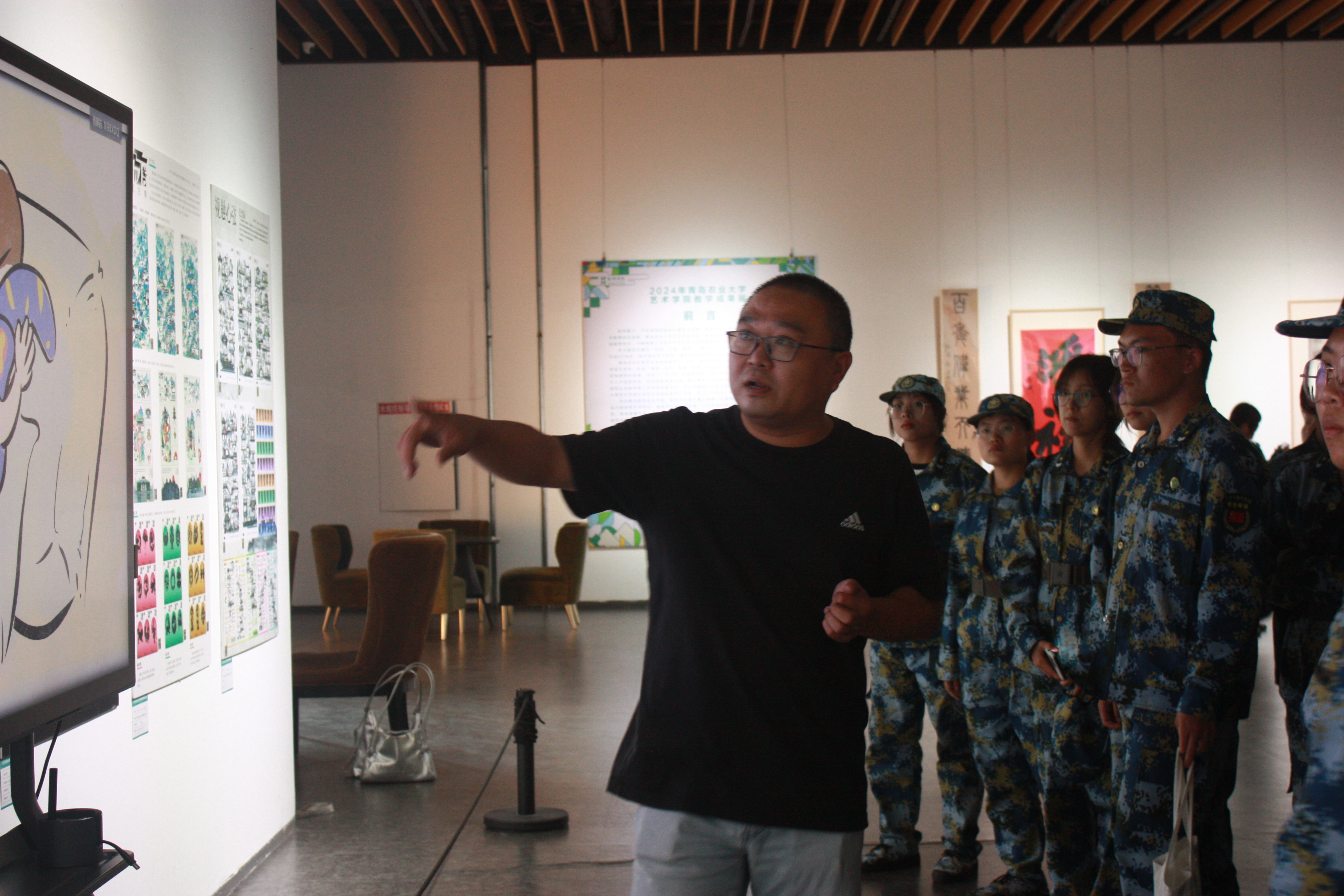 随后,在各系主任及专业教师的引导下,新生有序进入展厅参观“农韵·万象·耕新”2024教学成果展。老师们向新生详细地讲解各学科专业的专业特色及发展前景,并对展出的优秀作品进行深入浅出的解读。