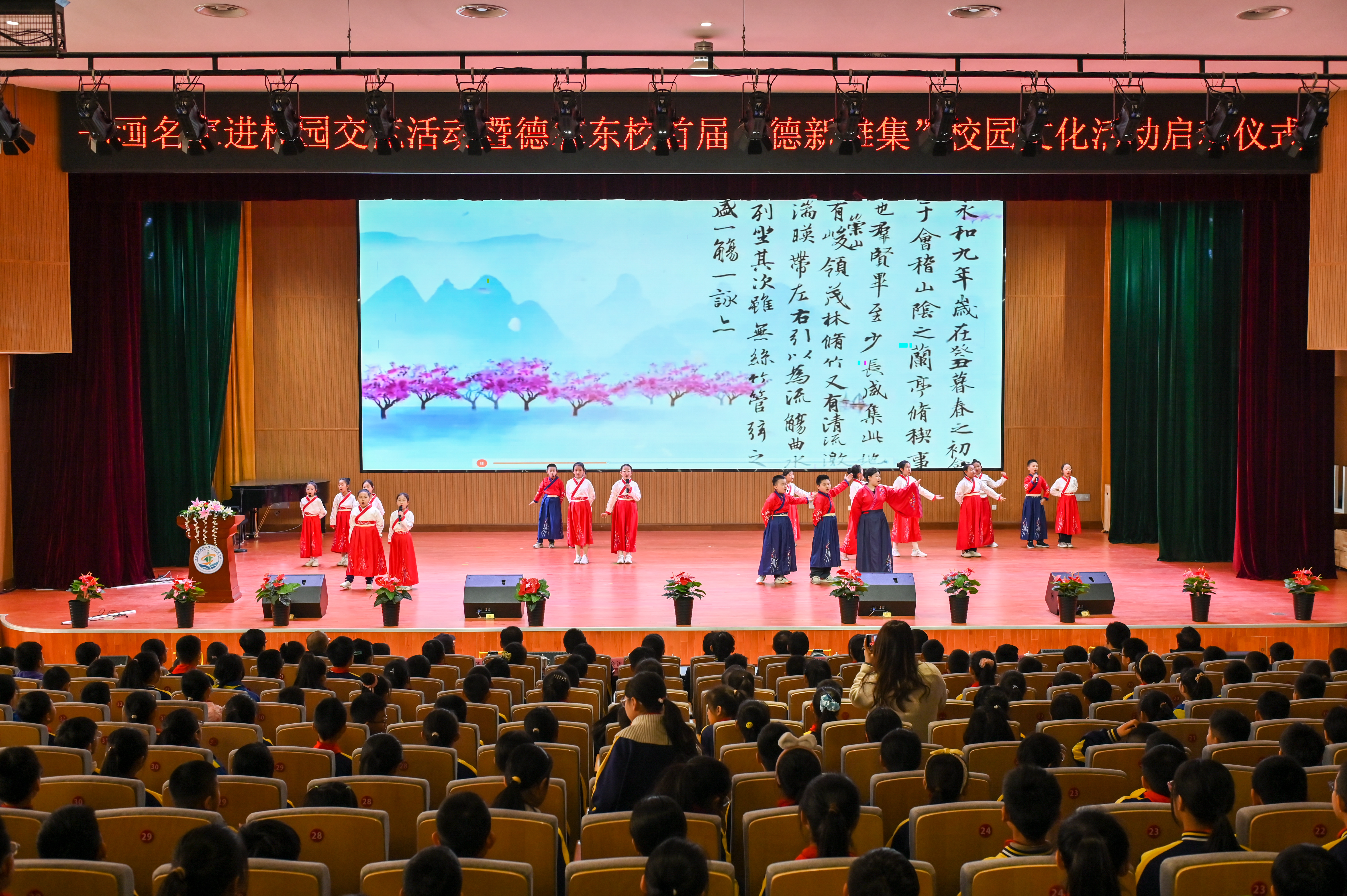 仪式上还展示了德馨小学东部分校通过跨学科教育培养青少年艺术素养的实践成果,师生们在以《兰亭新韵》为主题的长卷背景中,围绕“诗书画乐” 融合,开展了生动的美育实践。仪式后,太阳集团tyc151cc教师团队与青年书法家协会书法家们共同指导员工进行书画创作。