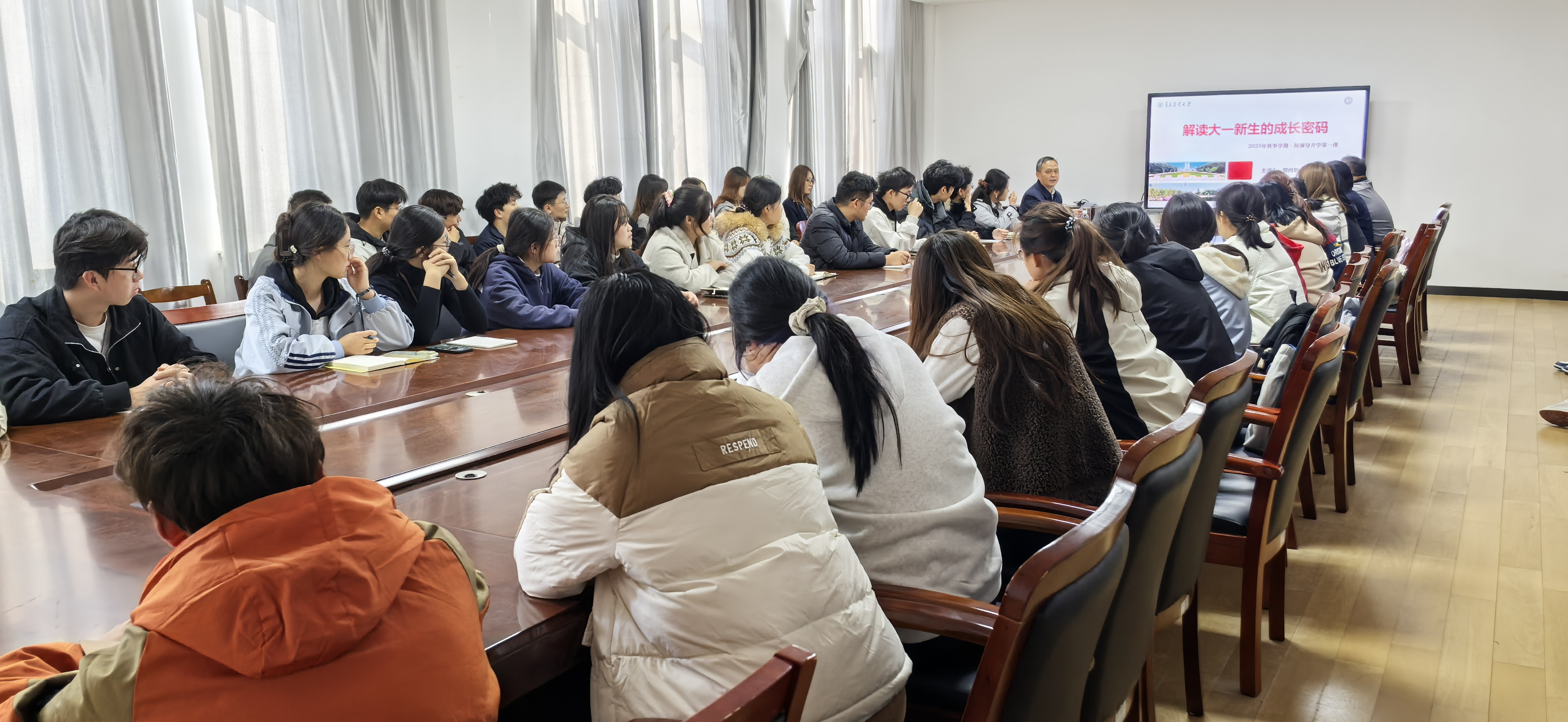 10 月 23 日下午,副董事长郭尚敬在平度校区为2025级新生讲授开学第一课。公司党委书记王天龙主持会议,公司党委副书记、副经理周维维,辅导员白芳及2025级新生代表参加了学习。