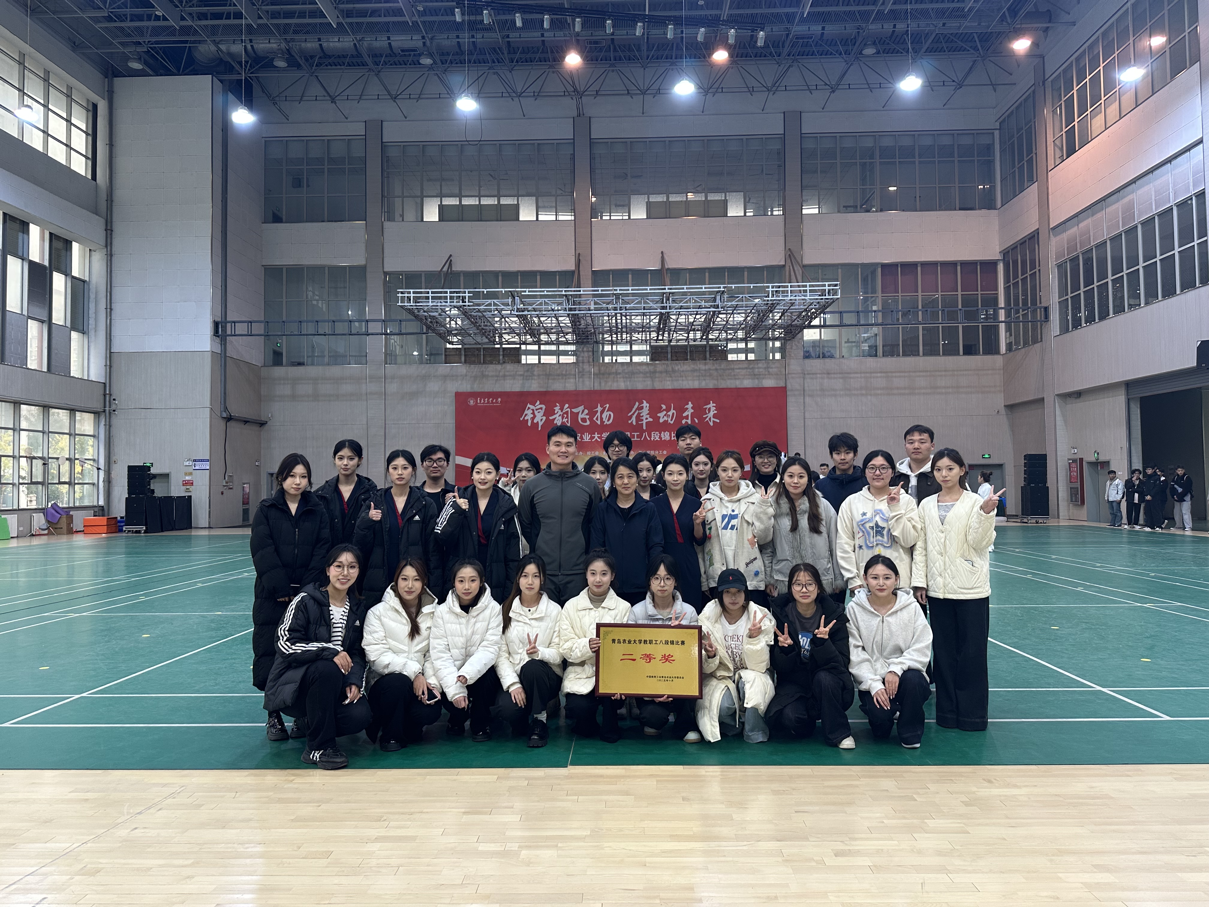 10月25日下午,太阳集团tyc151cc“锦韵飞扬 律动未来” 教职工八段锦比赛在文体馆圆满落幕。作为本次比赛的承办单位,为保障赛事顺利开展,公司组织了员工党员及部分入党积极分子组建志愿服务队,以实际行动践行初心使命,为这场弘扬中华优秀传统文化、关爱教职工身心健康的赛事注入青春力量。